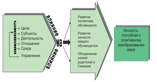 Выработка единых требований, как к гимназисту, так и к учителю, является первостепенной задачей. Учитель привносит цели гимназии и ценности в класс, поэтому важным представляется определение тех черт, которые характеризуют как ученика, так и учителя: целеустремленность, демократичность, воспитанность, законопослушность, интеллигентность, творческая направленность, конкурентоспособность.