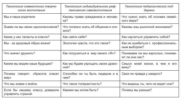 Воспитательная технология коллективного творчества И.П.Иванова и технологии индивидуального рефлексивного самовоспитания О.С.Анисимова, П.Г.Щедровицкого - это две дополняющие друг друга технологии, рассчитанные на возбуждение внутренних факторов-усилий по самостроительству, которые есть в каждом ребенке, но еще не раскрыты. Технология индивидуальной поддержки является продолжением
