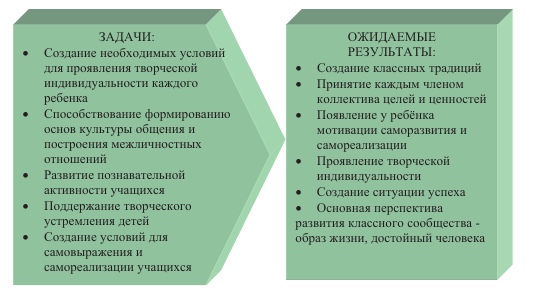 Цель программы: раскрыть и развить творческую индивидуальность личности ребенка, умеющего дорожить ценностями и традициями классного коллектива, способного выстраивать с одноклассниками отношения доверия, уважения, взаимопомощи.