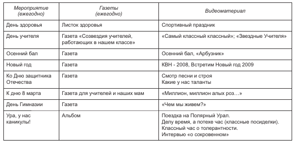 В нашем классе совместно с родителями ведется архив. Это и фотоальбомы, и видеосюжеты, которые мы бережно храним.