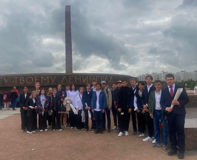 Ученики 483 школы начали сегодняшний день с памятной акции «Помним! Скорбим! Гордимся!» и возложения цветов к памятнику Д.Д. Шостаковичу, автору знаменитой «Ленинградской симфонии».