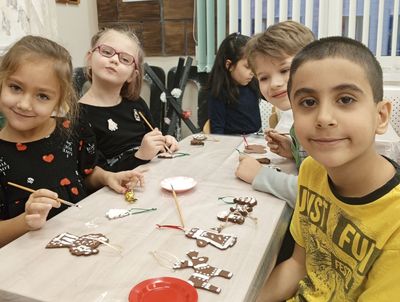 Одна из таких традиций – это выпекание, роспись и дарение пряников на Рождество. А еще в старину ими украшали елку. Она пришла к нам из Европы еще в IX –XI веках. Рождественскими пряниками считаются силуэтные или вырезные. Их вырезают ножом или формами из тонко раскатанного пряничного теста, выпекают и расписывают глазурью. Многие годы в России эта старинная традиция была забыта. И вот уже несколько лет она снова возрождается. Ребята с большим удовольствием сами попробовали украсить прянички. У всех получились на славу – расписные, узорные!
