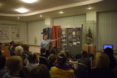 Руководитель музея Елена Мозгалевская рассказала собравшимся о том, как в блокадном городе отмечали такие праздники как День Великой октябрьской социалистической революции, День международной солидарности трудящихся, Международный женский день, Пасху и День физкультурника.
