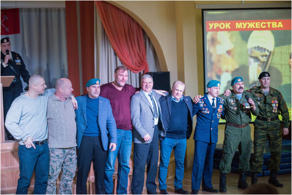 Гости, приглашённые на Урок Мужества – Герои России, ветераны боевых действий, военные, кавалеры боевых орденов и медалей, спортсмены-чемпионы, заслуженные мастера спорта, знаменитые артисты, представители законодательного собрания СПб и муниципальной власти.