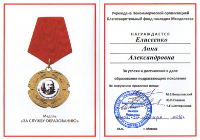 В Москве прошел финал ХI Всероссийского конкурса профессионального мастерства педагогов «Мой лучший урок». Учительница английского языка школы №482 Выборгского района. Елисеенко Анна заняла I Место и была награждена медалью «За службу образованию», за успехи и достижения в деле образования подрастающего поколения.