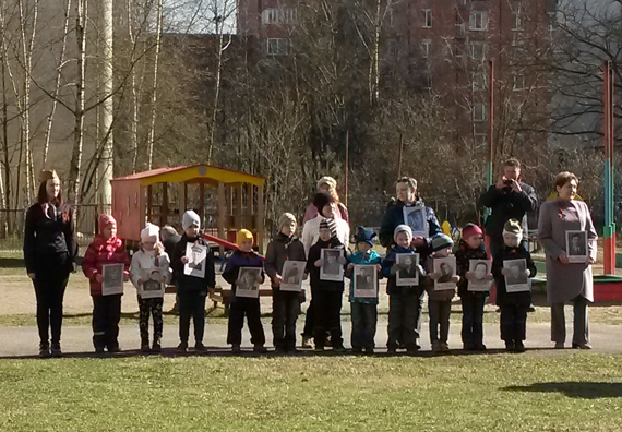 В этом году социальные партнеры нашего детского сада, участники ДОО «Искатель», созданном при ГБОУ школе №453 Выборгского района Санкт-Петербурга имени Сергея Жукова (координатор – Кузнецова Татьяна Анатольевна), предложили попробовать провести акцию «Бессмертный полк» для воспитанников детского сада. Эта идея показалась очень интересной и актуальной, т. к. многие родители в преддверии Дня Победы говорили о своём желании принять участие в городской акции «Бессмертный полк», но выражали сомнения в том, что младшие дошкольники смогут выдержать столь длительное и масштабное мероприятие.