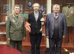 Награду за III место в номинации «Катюша» педагогам торжественно вручил военный комиссар города Санкт-Петербурга, Герой Российской Федерации Качковский С.В.