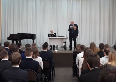19 февраля в актовом зале школы №494 состоялась встреча учеников 9-11 классов с ветеранами Великой Отечественной войны Богдановым Валентином Ивановичем и Глушкиным Альбертом Борисовичем, посвященная Дню защитника Отечества. Ветераны поделились с ребятами воспоминаниями о войне, ответили на вопросы старшеклассников.