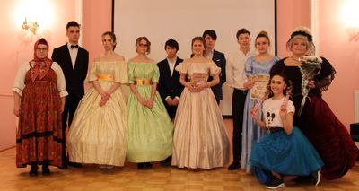 21 февраля уже в десятый раз Дом детского творчества «Юность» проводил Районную конкурсную программу «Ужель та самая Татьяна». В этом году мероприятие проводилось в Центральной городской детской библиотеке им. А.С. Пушкина. В нем приняли участие команды из четырех школ района: 60, 103, 135, и 494. Участницы соревновались в умении писать стихи «современной Татьяны», играть на сцене, водить хороводы и танцевать вальс. Авторитетное жюри приняло непростое решение присудить титул «Та самая Татьяна» Кирилловой Екатерине из 103 школы, титул «Татьяны милый идеал» и приз зрительских симпатий завоевала Ефимова Анна из 60 школы, титул «Татьяна русская душой» получила Шакуро Ольга из 486 лицея, а самой «Современной Татьяной» была признана Бондарева Анастасия из 494 школы. Победу в литературной дуэли одержал Хлусов Виталий из 60 школы. Украшением мероприятия стало выступление вокального ансамбля «Спутник» Дома детского творчества «Юность» под руководством О.П. Ивановой.