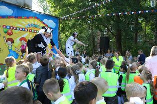 В Доме детского творчества «Союз» 7 сентября состоялось «Посвящение в пешеходы». Первоклассники школ Выборгского района стали участниками новой досуговой программы «Волшебство по правилам». Во время красочного представления ребята искали хозяйку потерявшегося в городе щенка вместе с веселыми персонажами и выполнили не сложные, но очень важные для самостоятельных пешеходов задания.