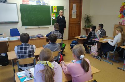 В 6 школе прошла встреча инспектора, майора полиции ОГИБДД УМВД РФ по Выборгскому району г. Санкт-Петербурга Оксаной Селенгинской с учениками 2,3 и 4 классов.