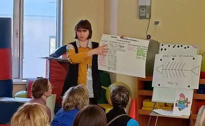Возглавили воркшоп Лариса Римашевская, кандидат педагогических наук, доцент кафедры дошкольной педагогики Института детства РГПУ им. Герцена и Ирина Тельнюк, кандидат педагогических наук, директор АНО «СПб НИИ педагогики и психологии высшего образования». На пленарном заседании они организовали дискуссию по основным проблемам современного образования, затем педагоги ДОО поделились опытом применения эффективных образовательных технологий: технология развития критического мышления, Сингапурская технология, сторителлинг. Формат секций (мастер-классы) помог участникам познакомиться с данными технологиями в практической деятельности и по достоинству оценить их значение для развития у детей таких важных личностных качеств, как самостоятельность и инициативность.