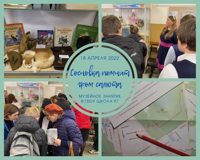 Стартом для образовательного путешествия стало музейное занятие в школе № 97 на Дрезденской улице. Здесь ко дню еще одной памятной даты, 2 апреля (Международный День Детской Книги) была организована выставка: «Музеи и библиотеки – хранители культурного наследия». Для выставки были отобраны книги из фондов, готовящегося к открытию школьного музея «Детство в городе белых ночей» и школьной библиотеки. Каждую книгу дополнили музейными экспонатами, для которых прототипами являются персонажи из книг и предметы их окружающие. В музее планируется создать 6 экспозиций: игрушки дней минувших, от букваря до выпускного бала, от детских увлечений до серьезных свершений, история детских общественных организаций и движений, и маленьких у войны не бывает.